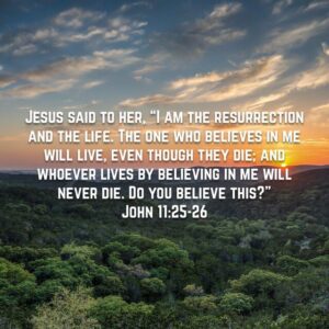 25 Jesus said to her, “I am the resurrection and the life. The one who believes in me will live, even though they die; 26 and whoever lives by believing in me will never die. Do you believe this?”